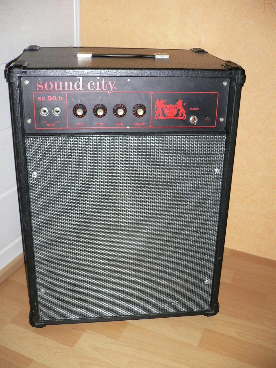 Die Marke von dem Verstärker ist Sound City SC 50b (steht jeden falls drann)