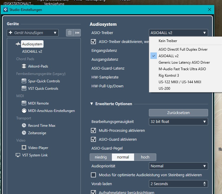 Nun meine Frage, wie kann ich Cubase dazu bringen einen Scan nach Hardware zu tätigen, so wie es nun nach der Installation von Asio4All war?