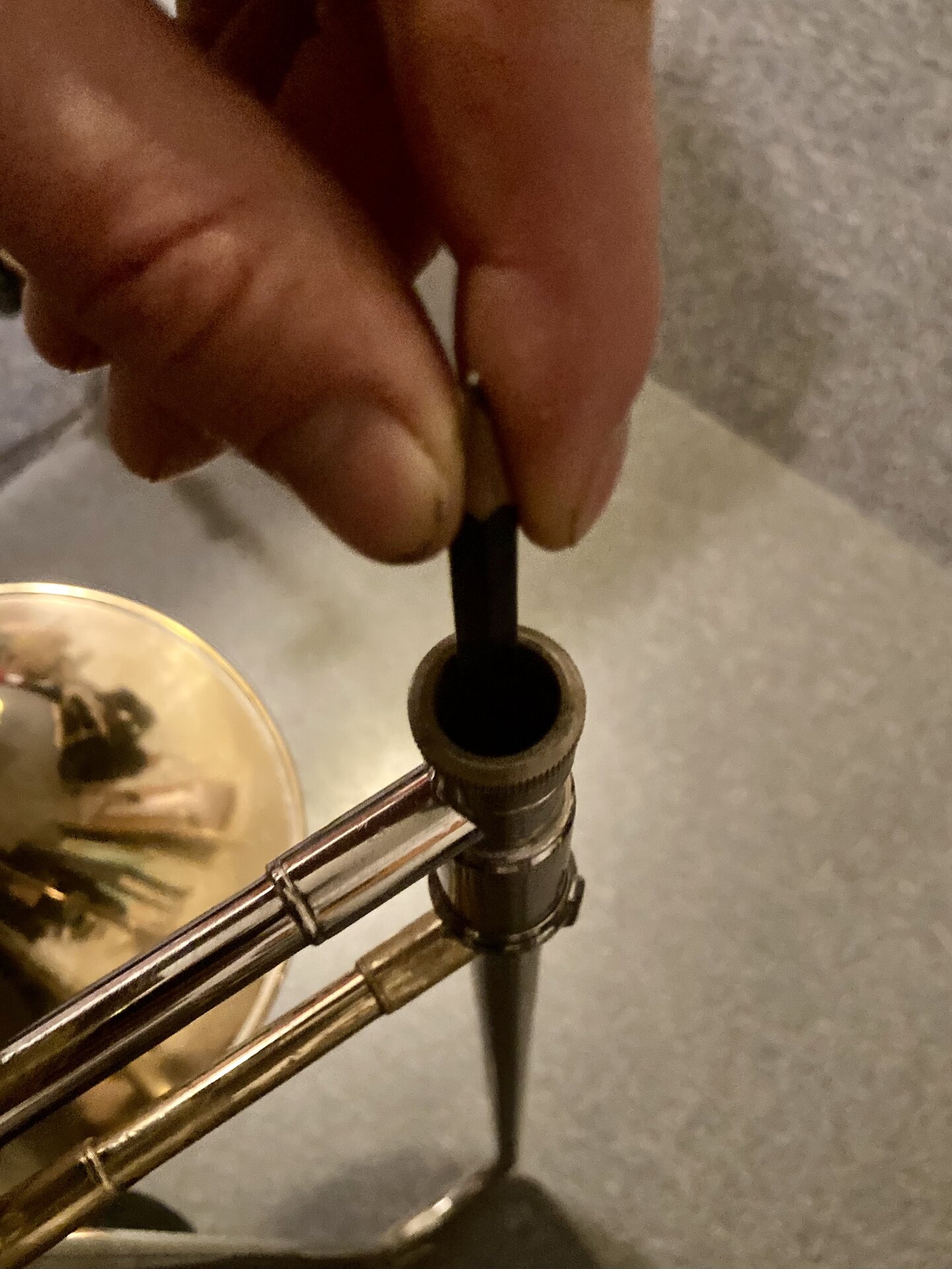 Hier ein Bild nach einmaliger Anwendung an meiner insgesamt nicht ungepflegten Tenorposaune mit Thayer Axialventil.