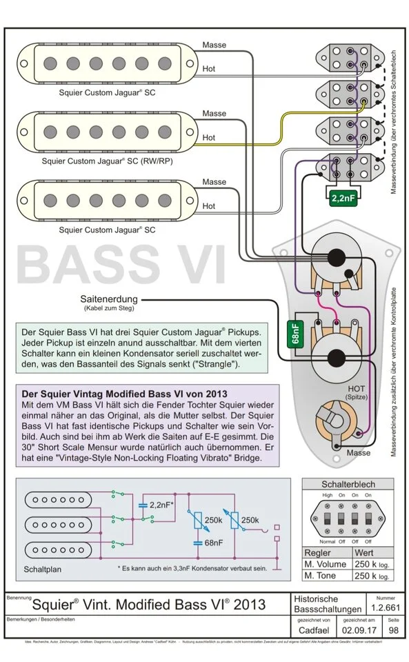 Mein aktuelles Setup läuft über einen Bass- und zwei Gitarren-Verstärker, mit einem großen Pedalboard dazwischen. Natürlich gibt es da viele Quellen für Störungen und die gibt es auch, aber es gibt auch Probleme mit der Gitarre. Hier möchte ich ein Upgrade machen, bin mir aber noch nicht sicher wie ich es umsetzen kann. Zunächst zu den Problemen, die ich beim Bass VI sehe: