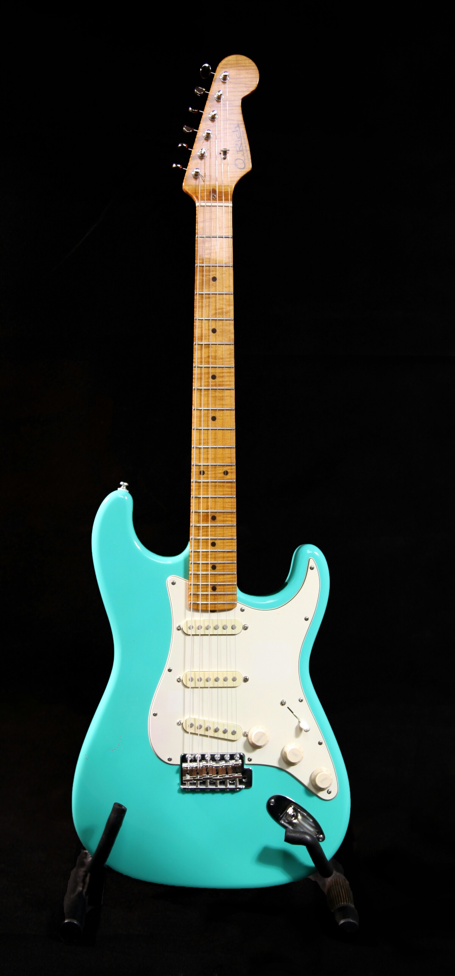Tremolo kommt von Gotoh,mehaniken vin Kluson mit ovalen flügeln,Pickups sind von Fender Custom Shop 69'Abigail Ybarra.