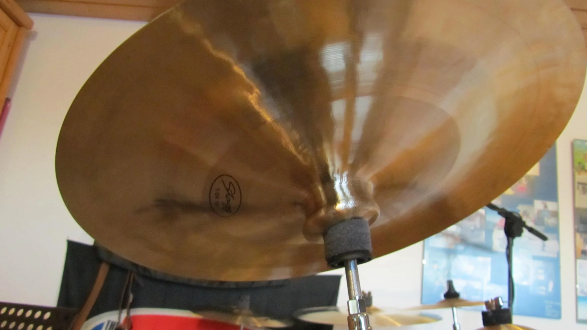 Das Stagg spricht Chinatypisch sofort an und übertönt meine anderen Becken teils deutlich - selbst das von mir vor kurzem reviewte Anatolian Diamond Trinity Crash in 18" Größe, was für mich ob der Größe des deutlich kleineren Chinas ziemlich beeindruckend war. Einen Eindruck davon bekommt ihr auch im Videoreview - hierfür habe ich nur ein SM57 mittig über dem Schlagzeug platziert ca. 1m vom China entfernt - hier spiele ich zum Schluss abwechselnd ein 16" Crash (Anatolian Emotion - näher am Mikrofon; auf dem Bild rechts davon), sowie ein 19" Crash (Masterwork Custom - etwas weiter weg als das China; auf dem Bild links davon) im Vergleich an. Trotzdem scheppert das China ordentlich heraus - so wie es schließlich auch sein soll