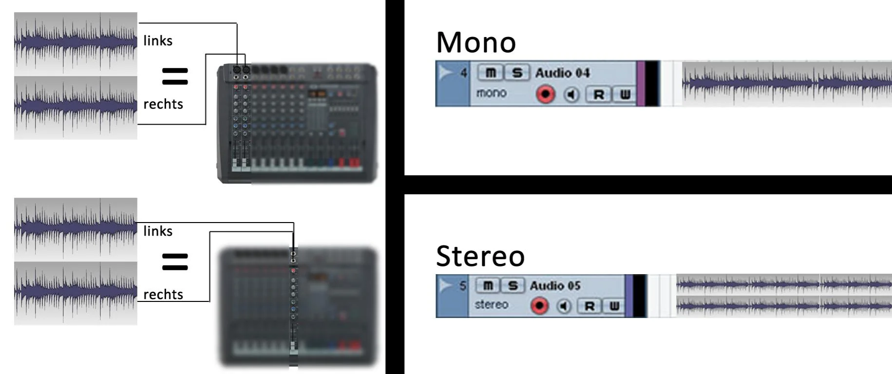 im Masterbereich auf stereo zusammengemischt und die Signale im Panorama verteilt. Im Tonstudio z.B. wurden diese Monokanäle auf jeweils einer Spur (mono) auf Band aufgenommen