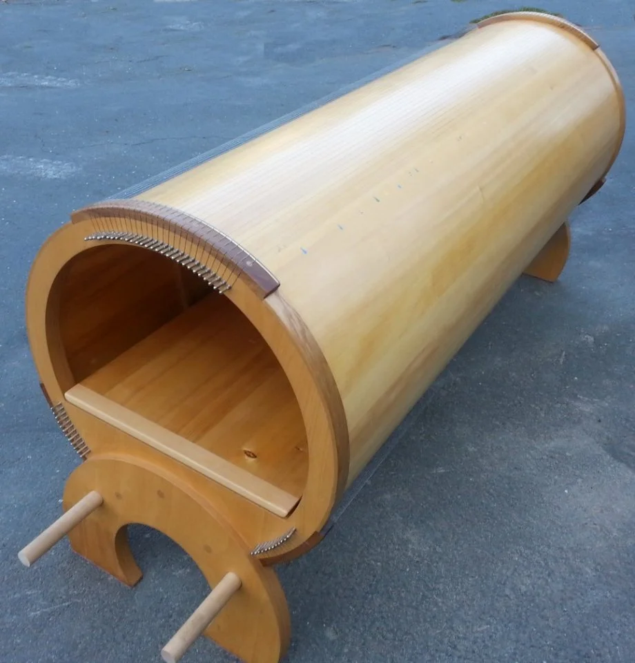 Es ist aus Fichte-Tonholz, 2m lang und hat einen Durchmesser von 80 cm.