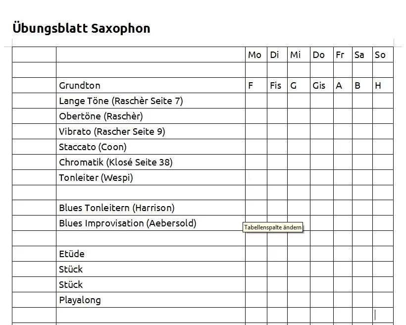 Mein Problem ist nur, dass ich gerne Klavier studieren würde, ich dann aber nicht mehr so viel Zeit fürs Sax hätte, da ich mich auf die Aufnahmeprüfung vorbereiten muss. Ich habe mir deshalb überlegt, Saxophon auf eine Stunde täglich zu reduzieren.Meine Frage ist nun: Was findet ihr was man in einer Stunde alles üben sollte, um dennoch (mit auch kleineren Schritten) vorwärts zu kommen? Ich dachte bisher an Technik (long Tones, Obertöne, Flageoletts, Fingertechnik) und Repertoire und Improvisation.