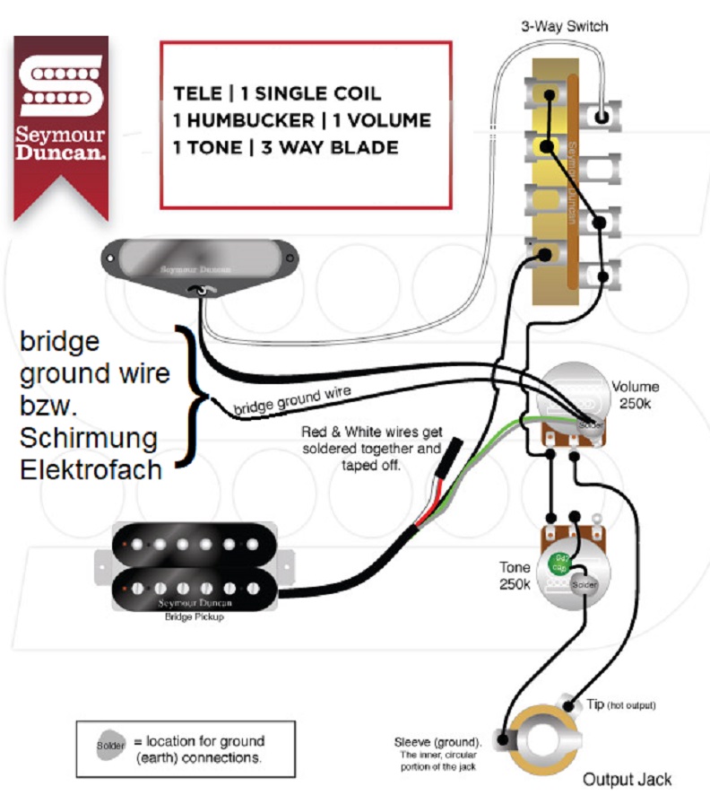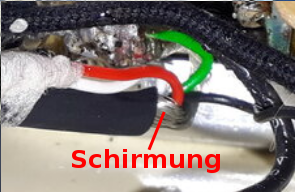 anderen Seite ein Ende eines kleinen Kabels irgendwo an diese Schirmung löten und das ander Ende abisoliert zwischen Body und Bridge klemmen.