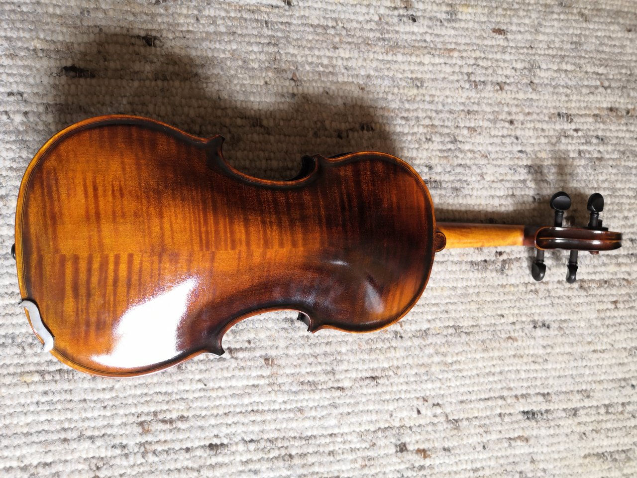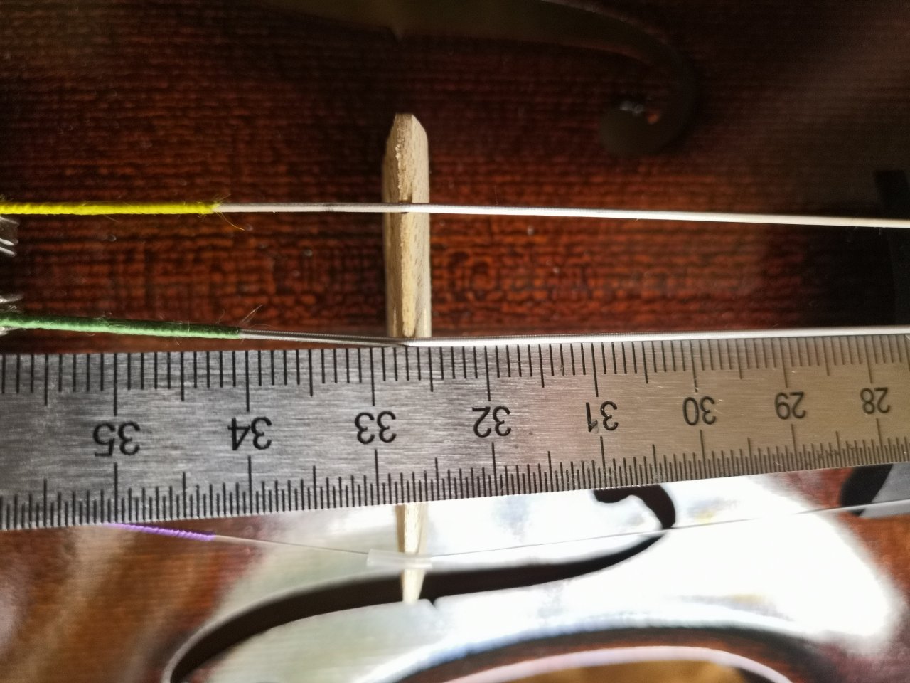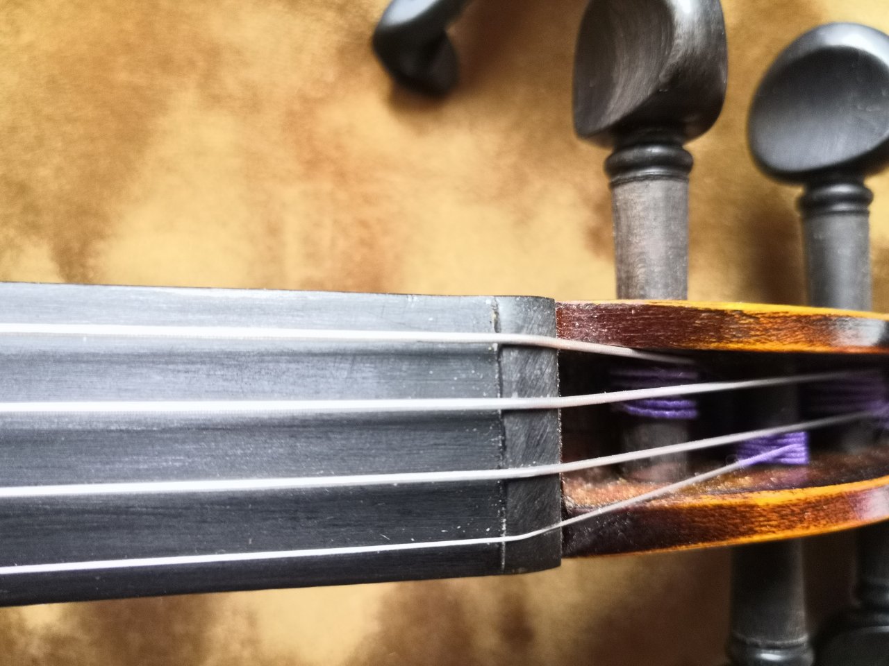 Stimmwirbel gingen sehr straff, die Löcher für die Saiten waren viel zu weit am Wirbelkasten. Die Saiten aufzuwickeln ein Abenteuer und definitiv nicht lehrbuchmäßig möglich. Das hat dann schon der angeblicher Geigenbauer oder eher Kontrolleur vom Streicherservice irgendwie hingebastelt...eine Fachabteilung deren Qualität ich bisher noch nie mit gut bewerten konnte. Somit wäre die Geige also ein Fall für neue Wirbel oder die alten müssten gängig gemacht und neu gebohrt werden, um die Saiten ordentlich aufzuwickeln. Wer die alten Bohrungen verwendet quetscht sich irgendwann die Saiten kaputt...teurer Spaß, aber der Laie kauft ja wieder neue Saiten beim großen T.