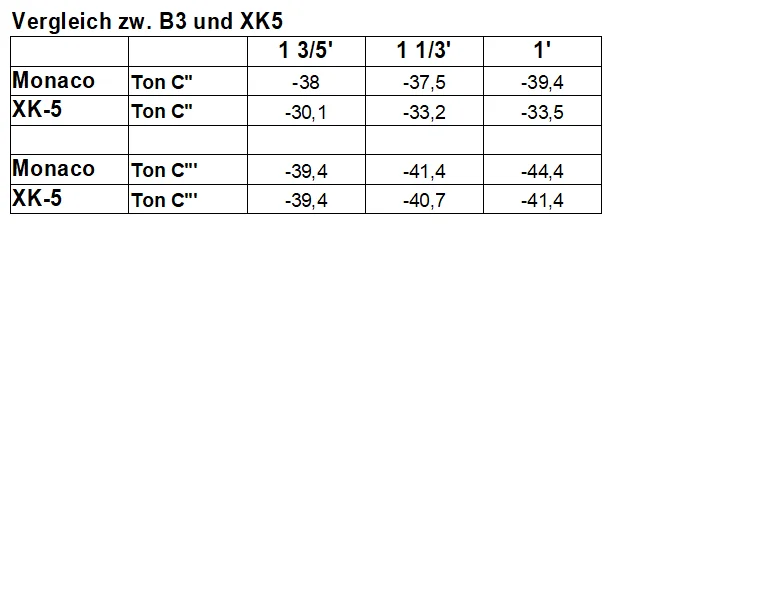 Selber habe ich keine B3, leider. Aber schon etliche gespielt und gehört, und noch ein paar mehr Clones und Aufnahmen. Und ich weiß daher, dass einem an G-G bei 888888888 nicht nur bei der Xk5 die "Ohren wegfliegen", sondern dass das relativ normal ist. Die Monaco-B3 klingt dagegen sehr "mellow". Wenn das das Ideal für dich ist, dann leg los. Es ist nur IMHO nicht repräsentativ für "den" B3-Sound.
