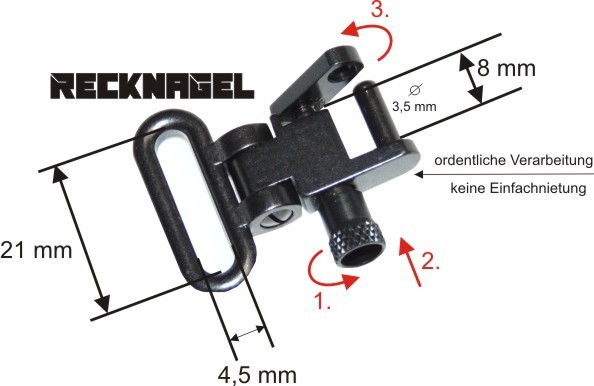 Also, ich habe mir aus dem Waffenhandel folgende Teile besorgt (sie dienen dort um bei den Langwaffen schnell den Riemen zu entfernen)