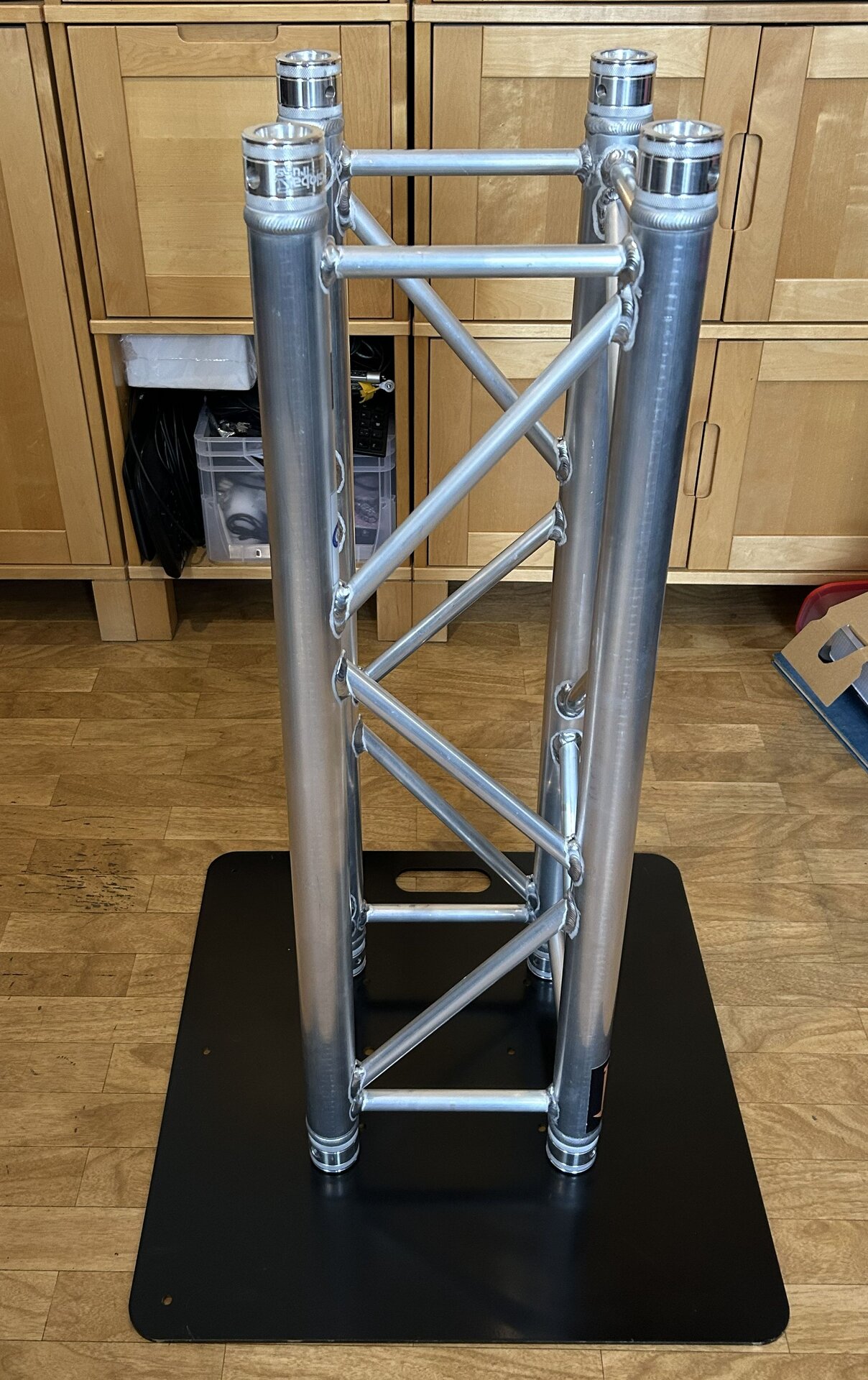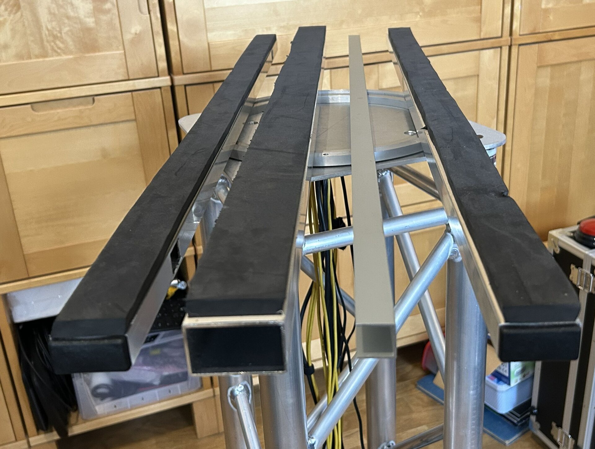 Nachdem ich mal bei einem Konzert von Dreamtheater war, wollte ich immer schon mal auch so ein cooles Keyboard-Stativ aus einer Traverse haben, incl. natürlich der Option, dass man das Keyboard da drauf drehen kann. Hier im Board gab es schon einige User, die so etwas nachgebaut hatten, u.a. @toeti, und davor noch einer, wo ich mich aber nicht mehr an den Usernamen erinnere.