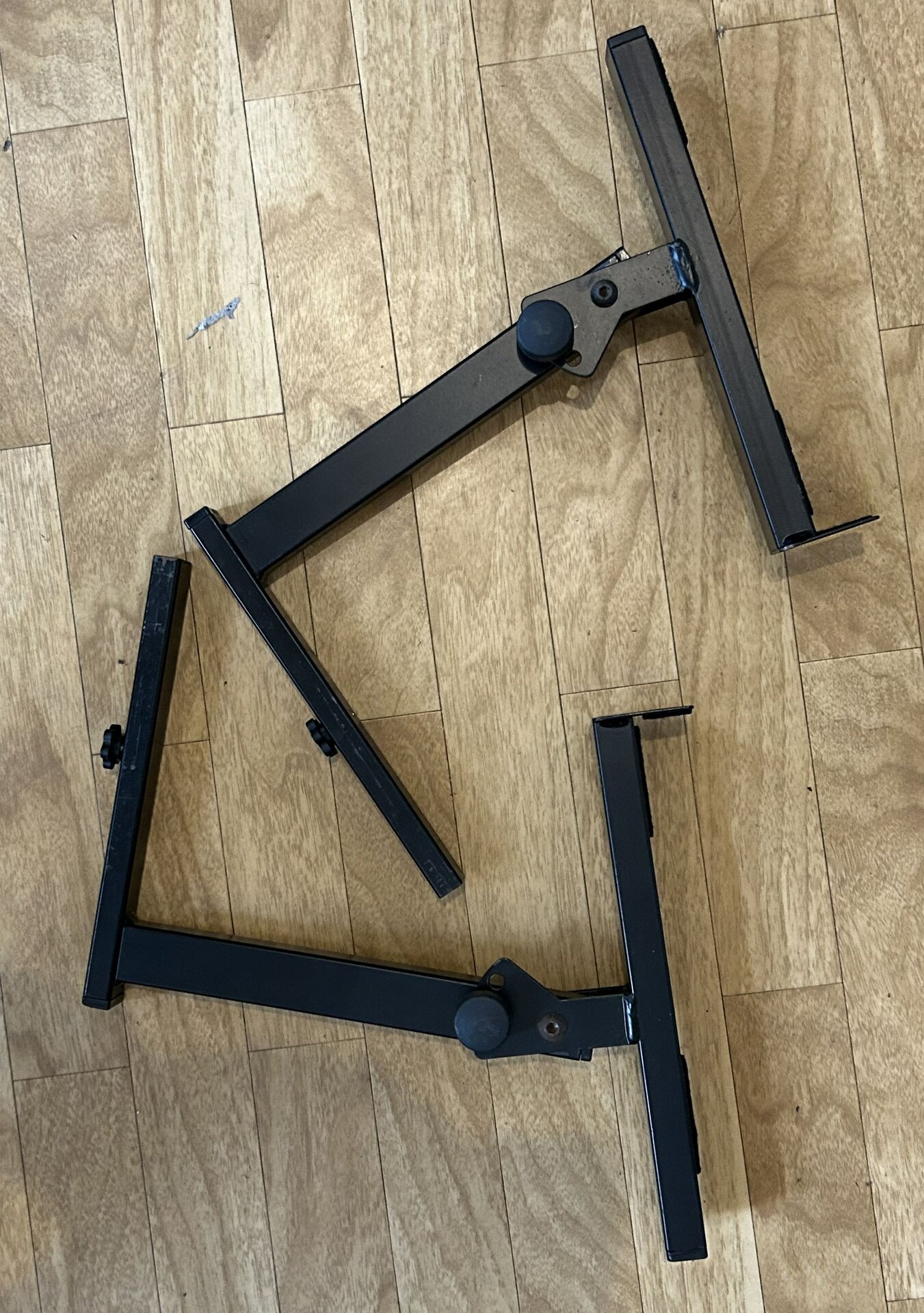 So ein Stativ für ein Keyboard zu bauen, ist keine große Sache. Man benötigt lediglich eine Bodenplatte, die Traverse, und eine Platte auf der man ggf. zwei Querstreben montiert.