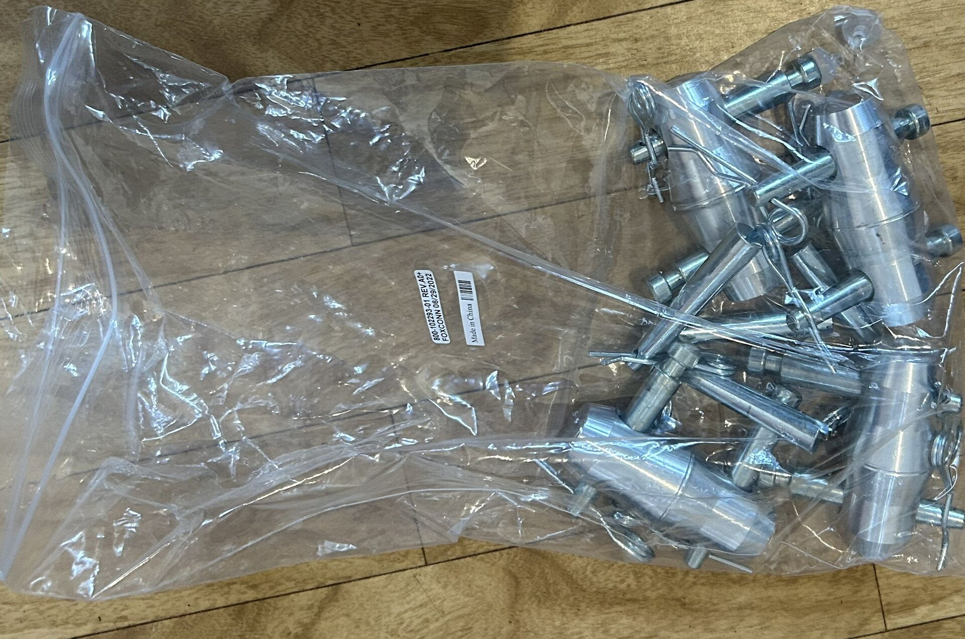 Also die Base Plate - 60cm sollten es schon sein -, die Traverse selber - für mich 1m genau richtig, da ich im Stehen spiele und dann genau einen 90° Winkel zur unteren Tastatur, eine Baseplate, auf der die Querstreben bzw. der Aufbau montiert wird und noch vier Half-Cones für die Befestigung der Traverse auf der Bodenplatte.