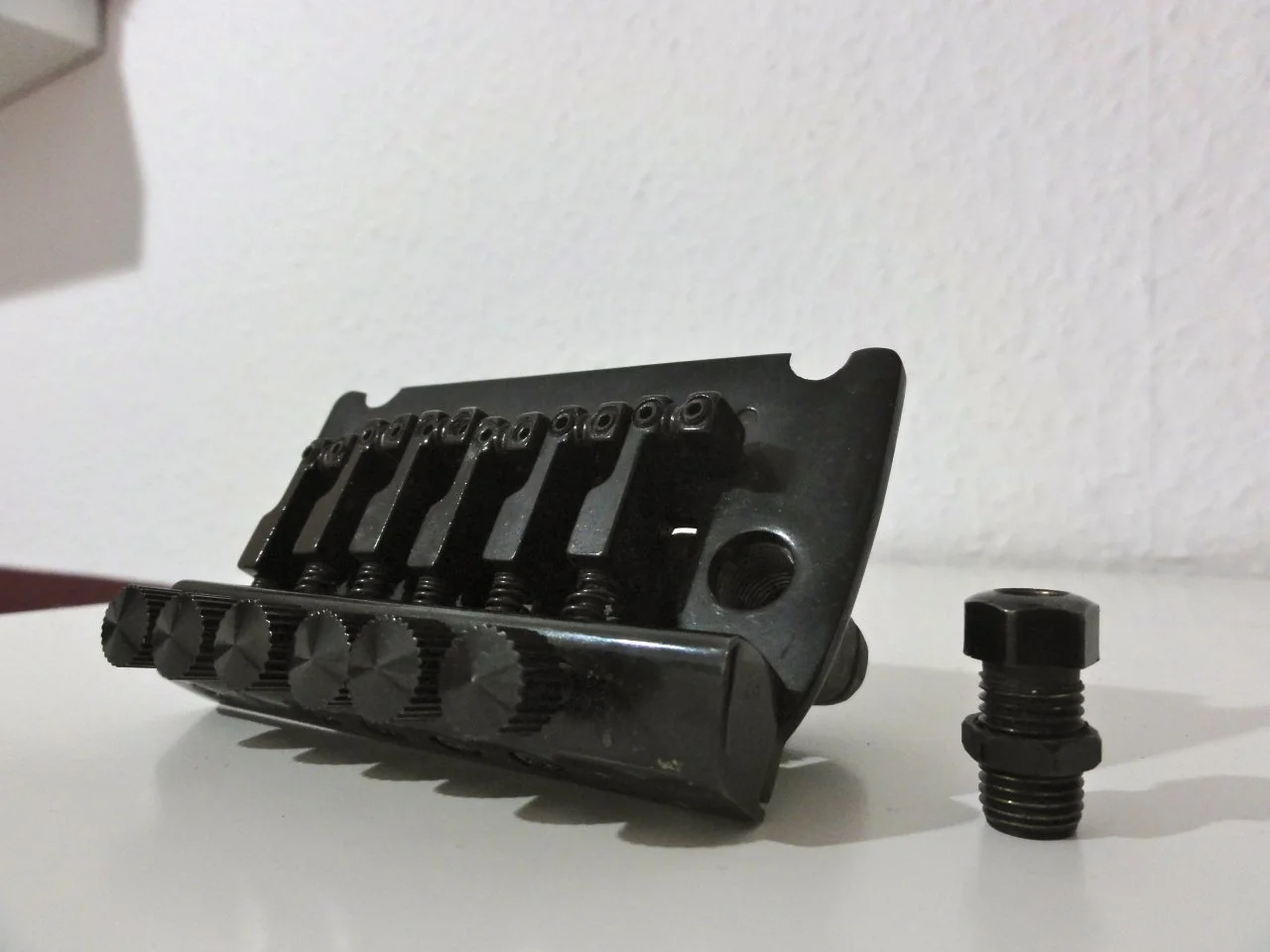 Hi Zusammen, habe hier ein Licensed under Floyd Rose Pats. von einer Spacer by Carmac. Ich suche verzweifelt einen neuen Tremolohebel udn habe kein Ahnung was für einen ich kaufen muss. Das Loch in der Mutter die im Tremolo eingeschraubt wird hat etwa 5,5 mm Durchmesser, aber ich habe keine Ahnung wie der Hebel bei diesem System halten soll!
