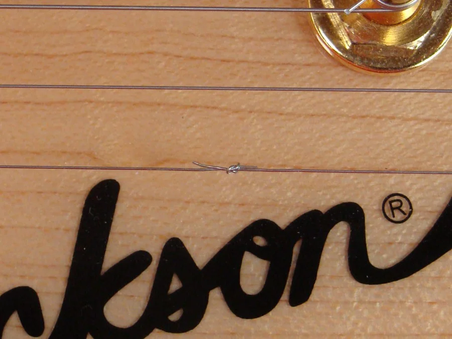 Wenns ganz hakelig wird bitte ich jemanden, die Saite an der Mechanik mit einer kleinen Zange festzuhalten während ich sie aufziehe, aber die Zange mitzudrehen ist auch nicht ganz einfach und man verursacht schnell Kratzer.