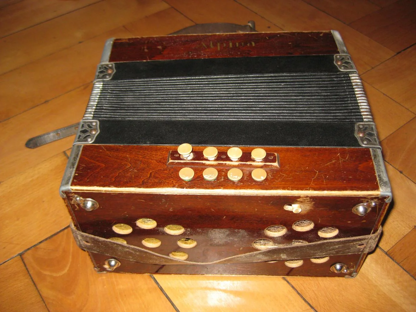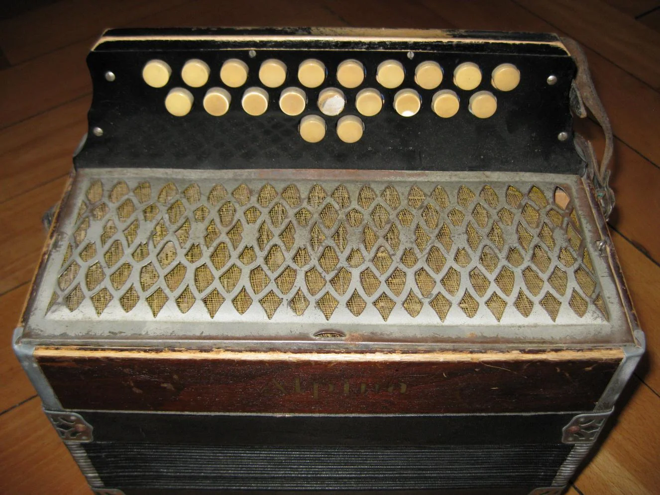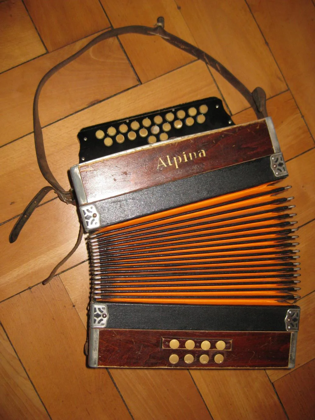 Bei der Hausräumung meiner Grossmutter kamen drei baugleiche, noch funktionstüchtige Akkordeons zum Vorschein. Sie müssten mind. 50 Jahre alt sein und wurden von Privat erworben. Mehr hat meine Grossmutter bezüglich dieser Instrumente leider nicht mehr in Erinnerung. Auf der Vorderseite ist der Name Alpina ersichtlich. Im Instrument selber sind keine Hinweise auf den Hersteller angebracht. Mich würde interessieren, um was für Akkordeons es sich hierbei handelt.