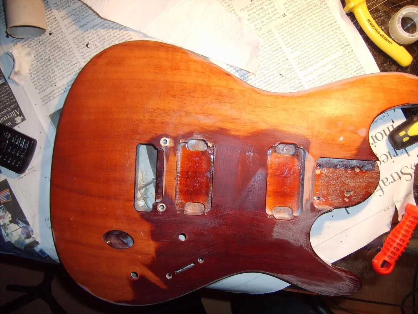 3. Ich hätte gerne ein natural Finish, wie zB: http://www.musik-schmidt.de/Ibanez-RG470AHZ-NTF.html , ich hoffe am Foto erkennt man, dass das Rot nur sehr dünn ist und man darunter die Maserung erkennen kann. Ich weiß nicht ob das sein kann, sieht für mich aber so aus, als ob der Body nur aus einen Stück besteht? Also, abschleifen ist klar, mache ich von Hand, nur wie behandele ich dann den abgeschliefenen Body?