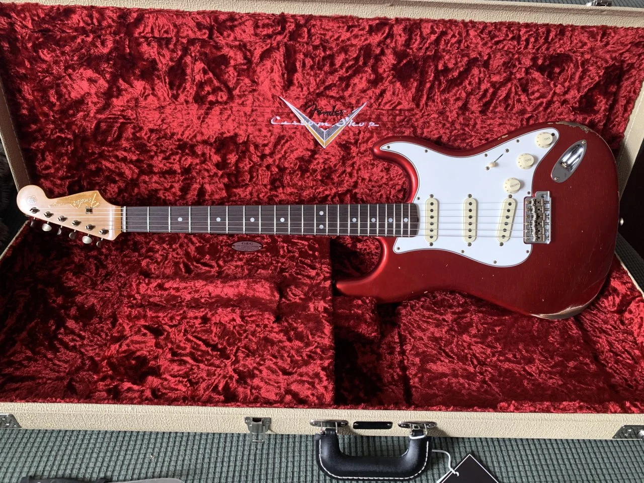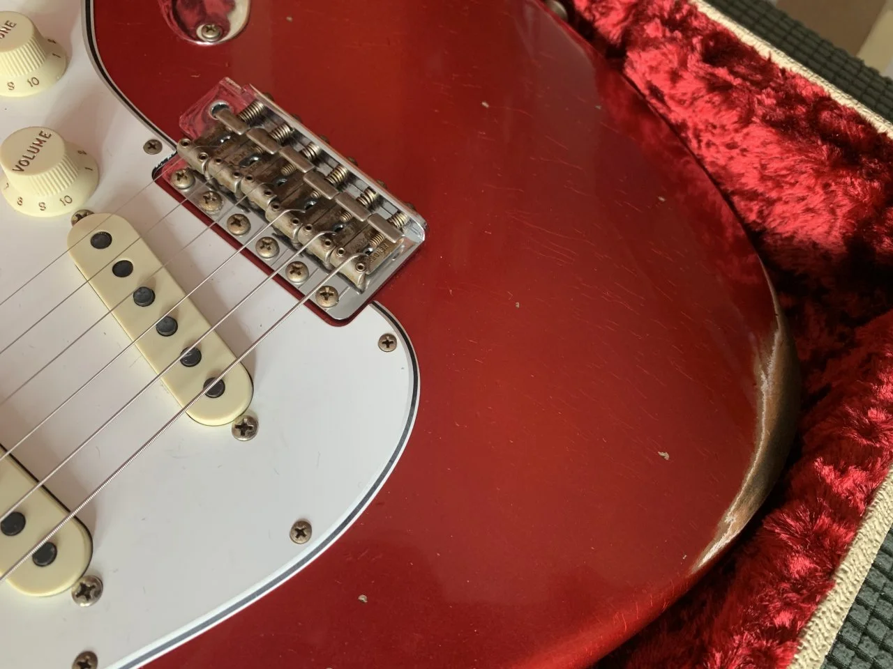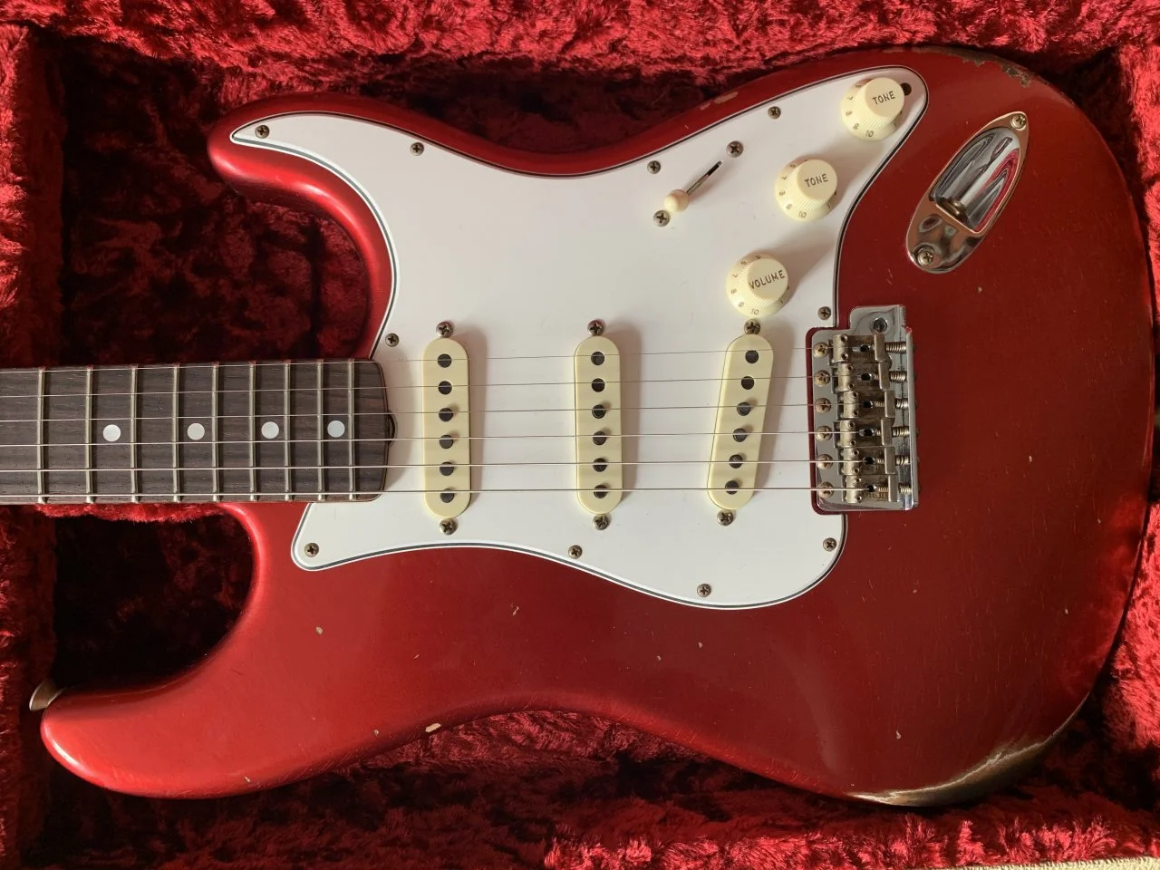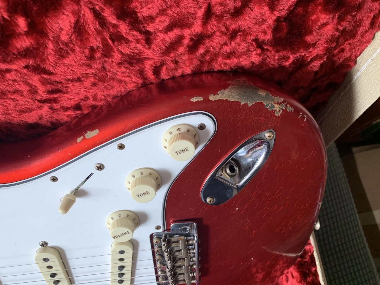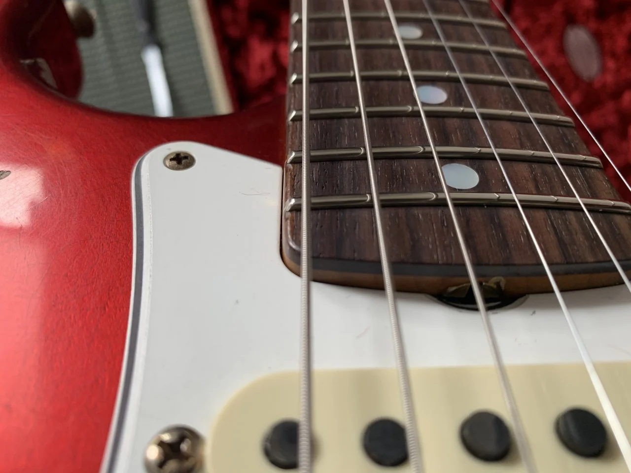 Das Pickguard kannst du durch lösen der Schraube an dem Metallwinkel begradigen. Der Metallwinkel hat einen Längsschlitz, in dem man das verschieben kann. Der Toggleswitch ist auch in einer Minute begradigt. Der wird sich während des spielens eh immer mal verdrehen ( geht bei meinen ständig). Die Nut sehen wirklich nicht gut aus, wenn es aber keine Stimmprobleme oder Probleme mit der Saitenlage gibt, ist alles OK. Zu den Bünden kann man anhand der Fotos schlecht was sagen.