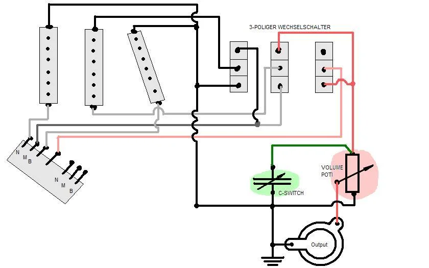 ) geholt und zwei kabel zum testen angeklemmt, an denen ich sie teste (strat mit e-fach vorn)eines ist ein masse kabel und das andere ist kurzgeschlossen mit dem eingangspol des volume potis, also dem signal der tonabnehmer im prinzip.