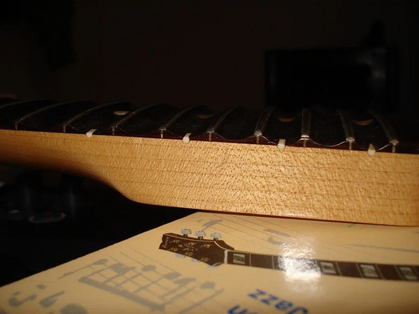 Und was lernen wir daraus? Das nächste Mal 100 Euro in einen Satz Rundfeilen, ein paar Blätter Schleifpapier (80er bis 400er), Griffbrettöl und Stahlwolle 0000er investieren und gleich selber machen.😉