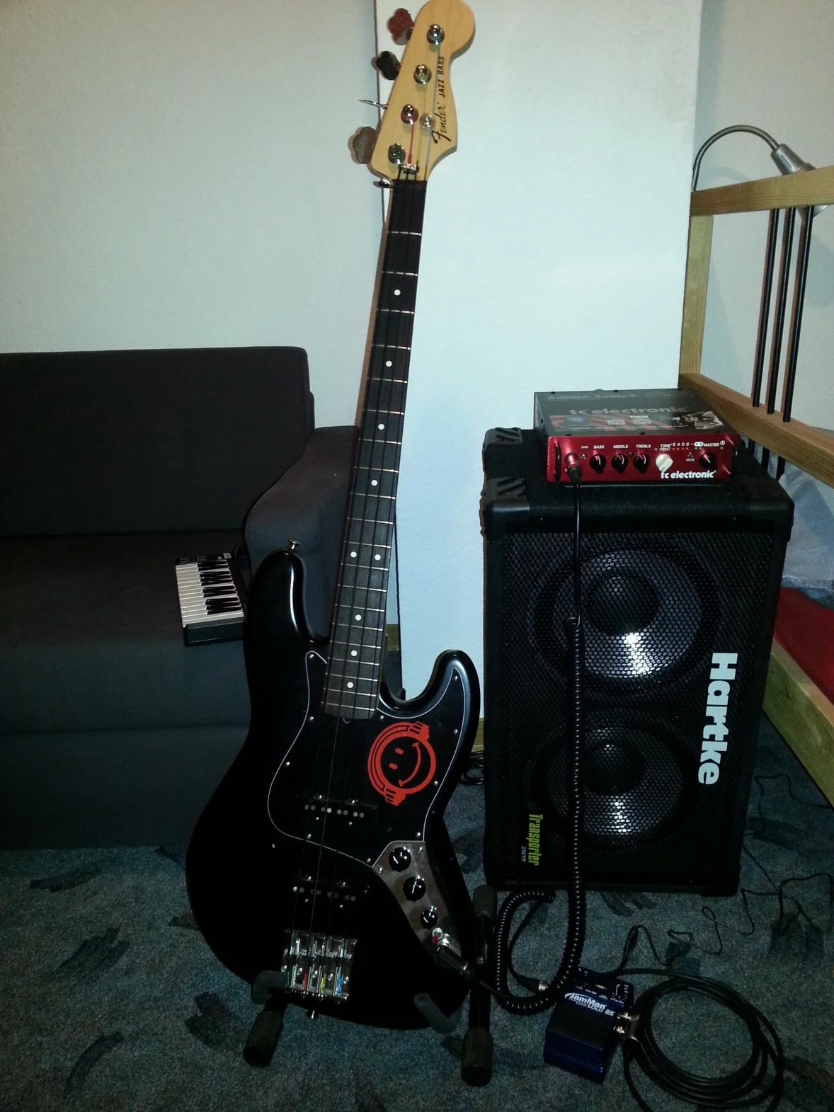 bei Zeiten kommt dann die passende 2x12er von TC, aber erstmal spare ich auf einen der neuen Sandberg Electra JazzysMein Verdacht würde da auf den Röhrenamp fallen. Die Box gibt wieder, was du in sie reinsteckst. Also auch die Subsonic-Anteile, die dein Röhrenamp liefert. Du brauchst einen LowCut-Filter und alles wird gut. Oder du spielst weiter über die Hartke, deren Frequenzgang scheint ja nach unten begrenzt zu sein.Also ich habe "nur" eine Box von TC und zwar die RS 210(400 Watt an 8 Ohm) eine sehr leichte und gut einhändig tragbare 2x10er die einen sehr neutralen Klang hat. Mit meinem "MarkBass litte Mark II" bei 300 Watt an 8 Ohm war sowohl Klang als auch Lautstärke sehr ausgewogen und durchsetzungsfähig. Seit ich jedoch ein Vollröhrentopteil habe (Eden E300T) mit 320 Watt an 8 Ohm habe, kann die Box in höheren Lautstärken leider nicht mehr mithalten. Selbst wenn Master- und Gainregler nichtmal auf 12 Uhr stehen, ensteht ein so "gewaltiger" Hub an den Membranen, dass die Boxen extrem zu kratzen/scheppern beginnen. Ich habe diese Box nun 2 Jahre, ca 100 Gigs mit ihr gespielt und war immer sehr zufrieden, aber einmal einen guten Röhrenamp drangehängt und sie geht übelst in die Knie! Selbst meine billige "Hartke VX 410" mit nur 300 Watt an 8 Ohm hat das Topteil zufriedenstellend(etwas matschig und mumpfig) weggesteckt.
