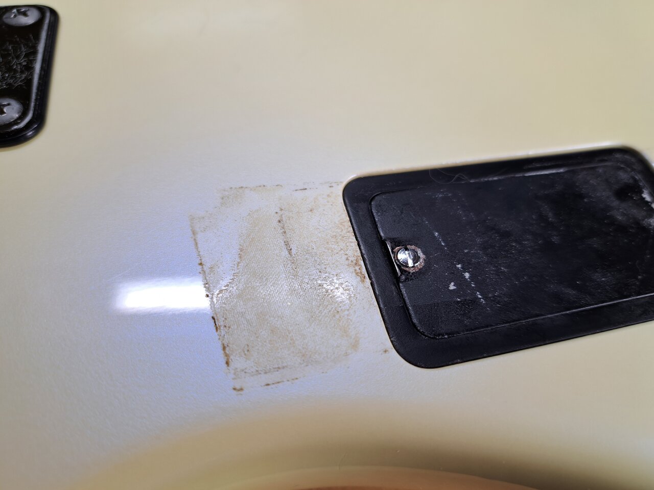 Auch die Rückstände vom Textilklebeband am Batteriefachdeckel mussten weg, hier hatte ich dank Isopropanol etwas leichteres Spiel.