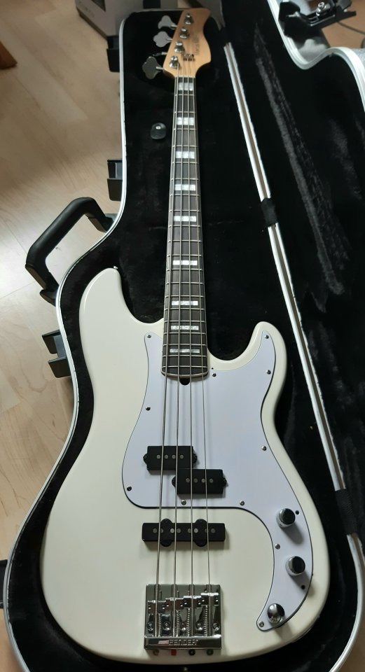Da der Bass für mich passiv viel besser klingt habe ich ihn komplett auf passiv umgebaut und ihm ein paar Lollar Pickups und eine Fender Himass Bridge spendiert....