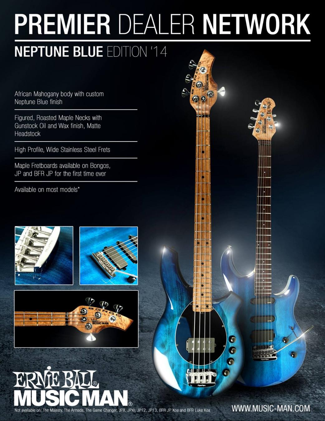 Im Prinzip ist das die Honey Roasted Serie in Blau, der Mahagonibody und die Ausstattung mit den Edelstahl-Bünden sind eigentlich identisch. Nur der Maple Neck für den Bongo ist neu.
