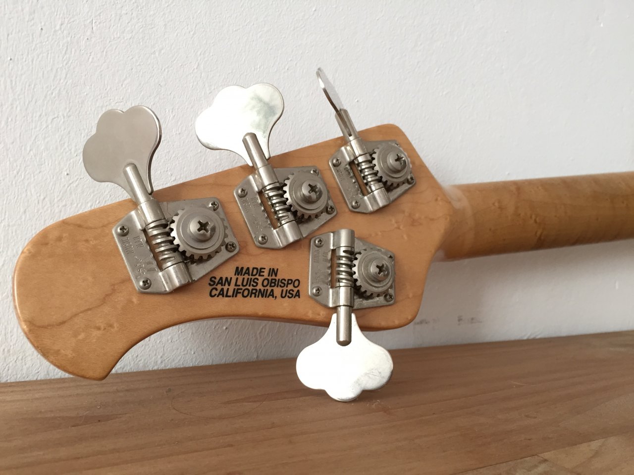 Die Saiten haben bunte Ballends, das sind vermutlich Fender Rounds.
