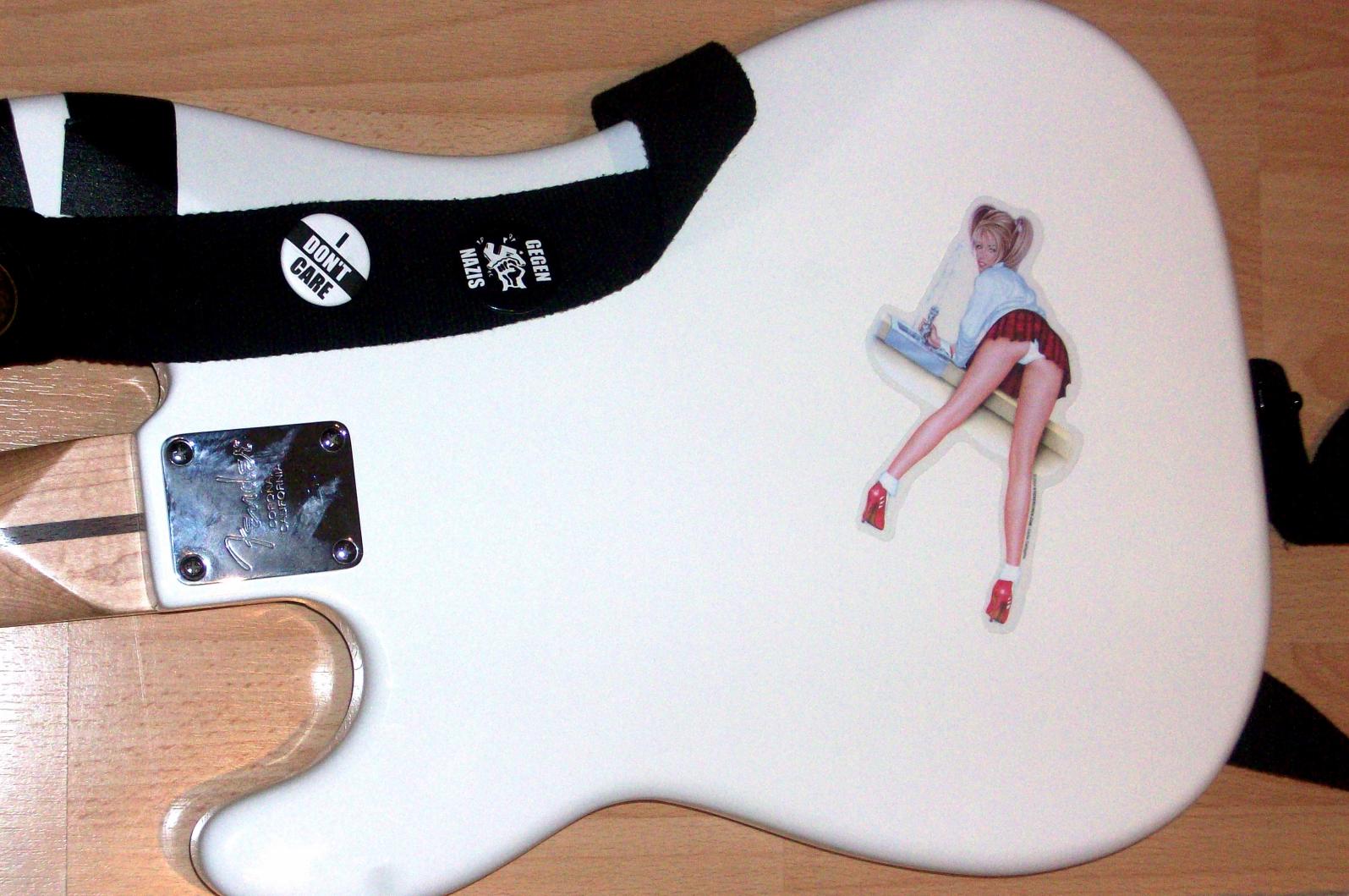 Aufkleber auf meinem 50s Preci würde so aussehen.