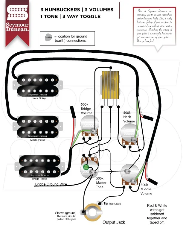 Dann Hals Middle und Bridge jeweils an ein eigenes Volume, der Middle davon an ein Push Push Poti damit man diesen zuschalten kann.