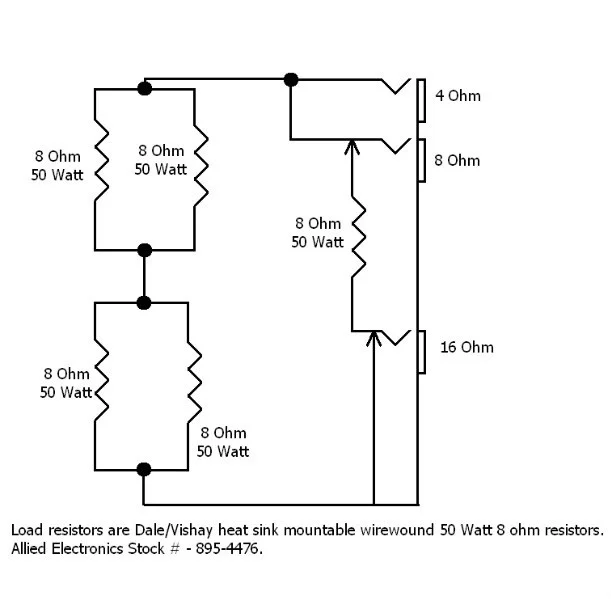 Da ich eigentlich nur einen 16 Ohm Load benötige, müsste nicht ein Eingang, der Über 4 x 50W 8Ohm Hochlastwiderstände läuft reichen? Also je 2 parallel und und 2 seriell?