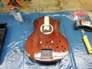 Ich habe dann den Ausschnitt für den Pickup sägen wollen und dabei ist etwas seltsames passiert: Ich sag nur Reibung macht Wärme: