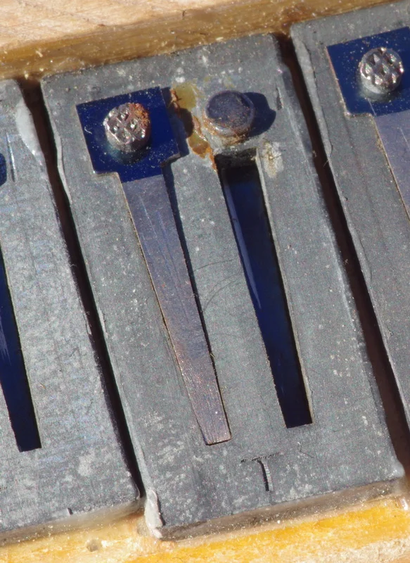 die großen Stimmplatten sind laut Verkäufer ,,verzinkt" und zwar so stark, das die Stimmzungen nicht schwingen können. Bin nun dabei, bei jeder Stimmzunge den ,,Zink" abzuschaben.