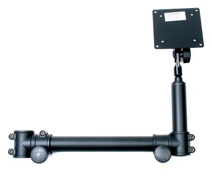 Aber wenn ich mir daran die Freiheitsgrade der beweglichen Teile anschaue, dann wird der Monitor nur gerade hängen, sofern er genau parallel zu den Längsrohren ausgerichtet ist. Ich möchte den Monitor aber auch mindestens 90° (eher 120°) zur Seite schwenken können. Mit einem weiteren, versetzten T-Stück ginge das. Ich befürchte nur, dass die Konstruktion (spätestens) dann zu instabil würde.