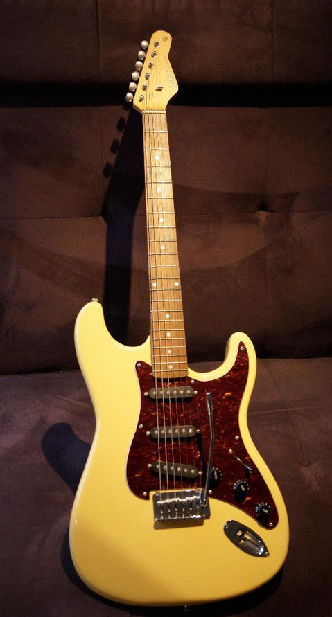 Aber um mich etwas zu präzisieren. Es gab mindestens 3 Varianten davon. Deines war die älteste (und für mich die Beste). Die hatte das hohe Binding am Hals-Korpus-Übergang, einen eingeleimten Hals und im Gegensatz zu den Jüngeren keine Bird-Inlays, aber dafür ein schönes schmales Halsprofil, wie es auch die Vester Paulas mit dem Open-Book-Headstpock hatten. Ich mag diesen Profil. Meine ließ sich auch super bespielen. Es gab noch eine Variante mit geschraubtem Hals. Da war das Halsprofil auch recht dünn. Dort waren unbezeichnete, 2-adrige Humbucker drin, genau wie in der Version mit umlaufend gleich hohem Binding, eingeleimten Hals und Birdinlays. Die hatte allerdings auch ein dickeres Halsprofil. Auch dort stand nichts auf den Tonabnehmern. Deshalb kann ich zu diesen Humbuckern auch nichts sagen. Im Katalog ist dazu auch nichts ausgeführt. Bei Deiner Variante steht wenigstens noch drin, dass es sich um Humbucker mit Alnicomagneten handelt. Mehr ist da auch nicht ausgeführt.