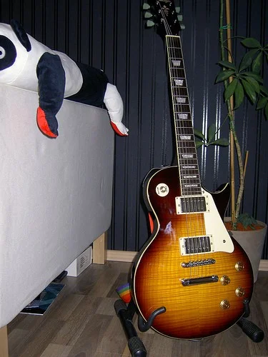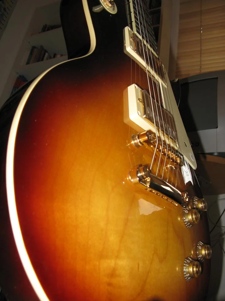 Der Hals liegt mir, wie vor fast nem halben Jahr beim Antesten angenehm(er als die etwas dickeren Epiphone-Hälse) in der Hand und mit dem Gurt hängt sie so am Körper, dass ich insgesamt gut klarkomme.