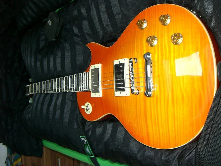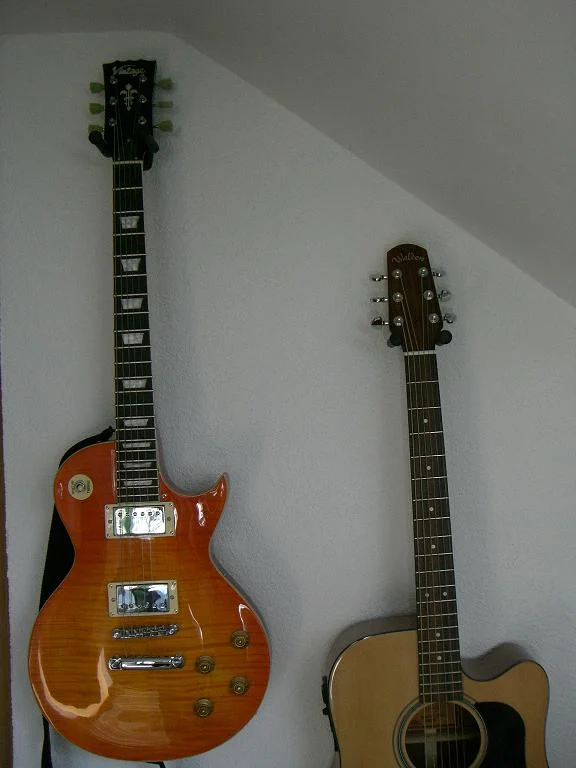 So ein schönes Teil, Bespielbarkeit und Verarbeitung 1A, wundervolle "Haptik". Sehr schöner Sound, falls es mir irgendwann zu wenig ist, ich hatte noch nie eine Gitarre in der Hand, bei der sich ein Pickuptausch so absolut lohnen würde.Hi atom, ich glaube eher"sasdim" seine ist eine cherry sunbirst V100CS. Aber macht sich gut an der Wand.