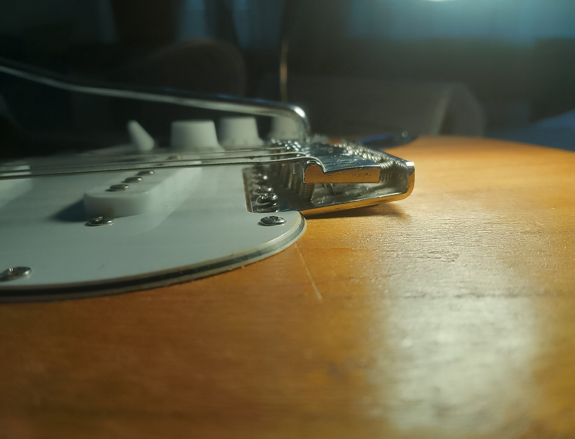 Das mein Vorgänger die Tremoloschauben ganz rein gedreht hat passt mir ganz gut, sozusagen Television Strat