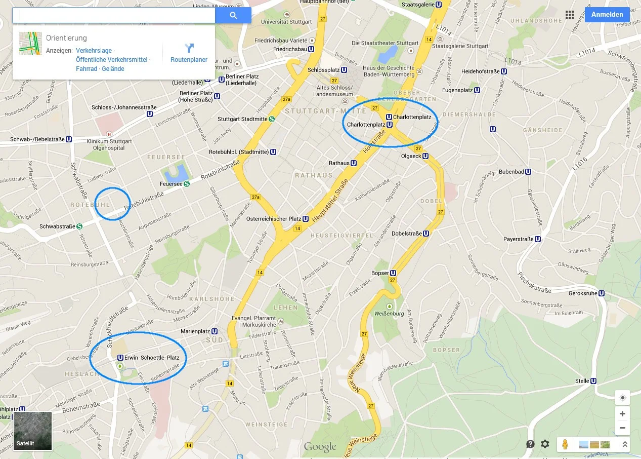 Eine dieser Lokalitäten wird es also in jedem Fall werden, sodass die Hotelsuche sich auf diesen Kreis beschränken kann. Ich kenne mich leider mit den Hotels und Pensionen in Stuttgart nicht wirklich gut aus - sollte einer der anderen Stuttgarter hier einen Tipp haben, immer her damit.