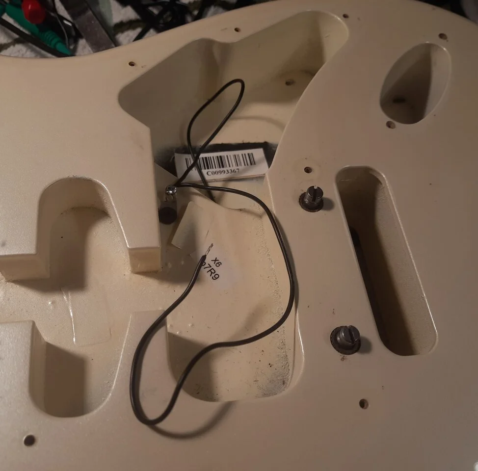 Also, das VG20 ist jetzt fertig eingebaut und die Batterie hat prima Platz. Allerdings bezweifle ich den schnellen Batteriewechsel, indem man nur die 4 Schrauben löst. Dazu müsste man das Pickguard ganz schön hochbiegen, und das trau ich mich im Moment noch nicht. Dann lieber doch den Tremoloblock mit Saiten raus und das ganze Pickguard abschrauben. Einmal im Jahr geht das schon.