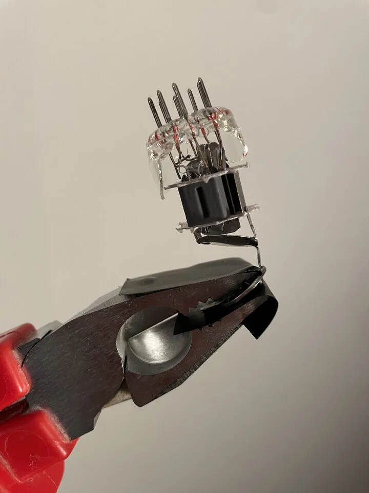 Hi! Neulich ist mir eine Vorstufenröhre in meinem Fender Bassman kaputtgegangen. Als ich sie wechseln wollte, ist das Glas gerissen, und nun hängt nur noch das Innenleben in der Fassung - siehe Foto. Ich könnte sie wahrscheinlich problemlos mit der Hand herausziehen, aber ich traue mich das nicht, da in Röhrenamps auch nach dem Abschalten ja immer noch ordentliche Spannungswerte zu befürchten sind. Wie gehe ich nun am besten vor?