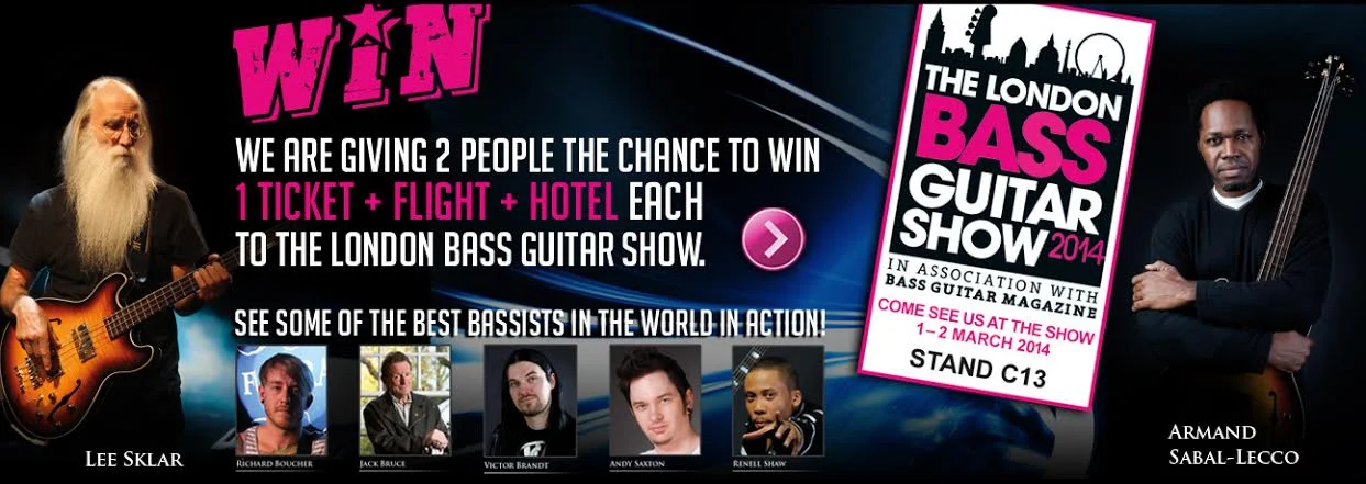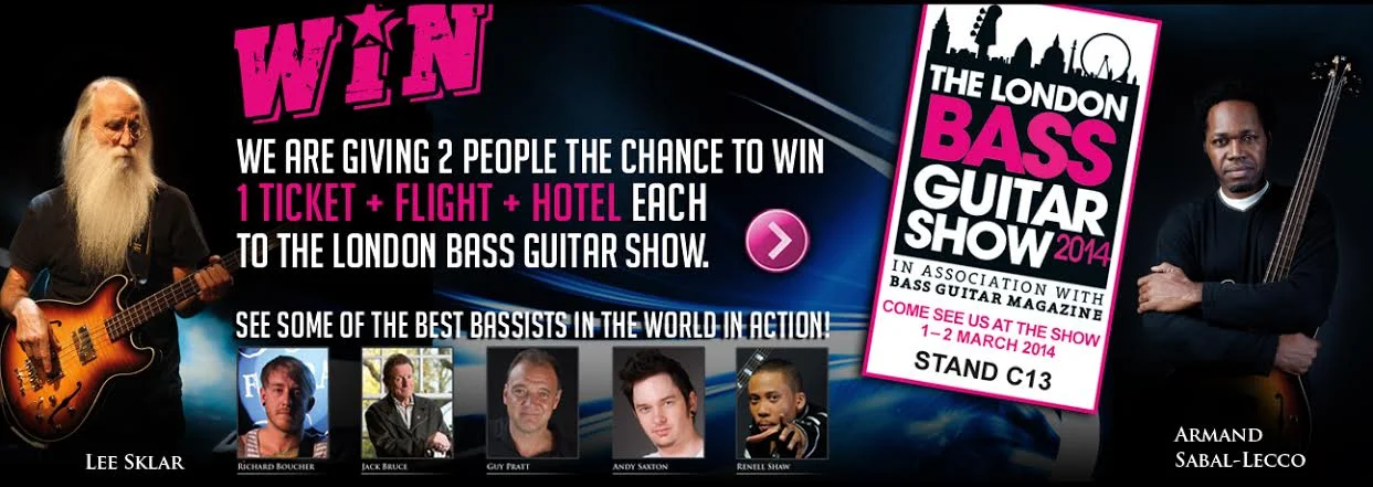 Für alle Bassliebhaber, verlosen wir zwei Tickets zur London Bass Guitar Show 2014, inkl. Flug (Abflug/Rückflug ab/zu den Flughäfen Frankfurt/M., München, Berlin, Wien, Zürich, Genf, Paris, Lyon, Mailand, Rom, Madrid, Valencia, Barcelona, Warschau, Prag, Stockholm, Oslo oder Kopenhagen) inkl. einer Übernachtung im Hilton Hotel in der Nähe des Olympia Centers. (Reisespesen werden nicht vergütet!)