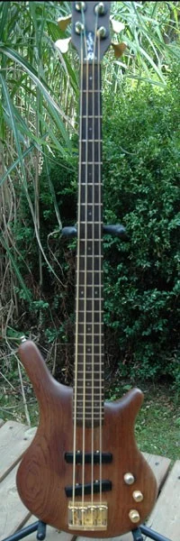 Hab mir von einem Kumpel aus dem Nebenproberaum seinen alten Bass ausgeborgt. Einen Warwick JD Thumb 4-Saiter mit durchgehendem Hals, EMG Pickups, einteilige Brücke.