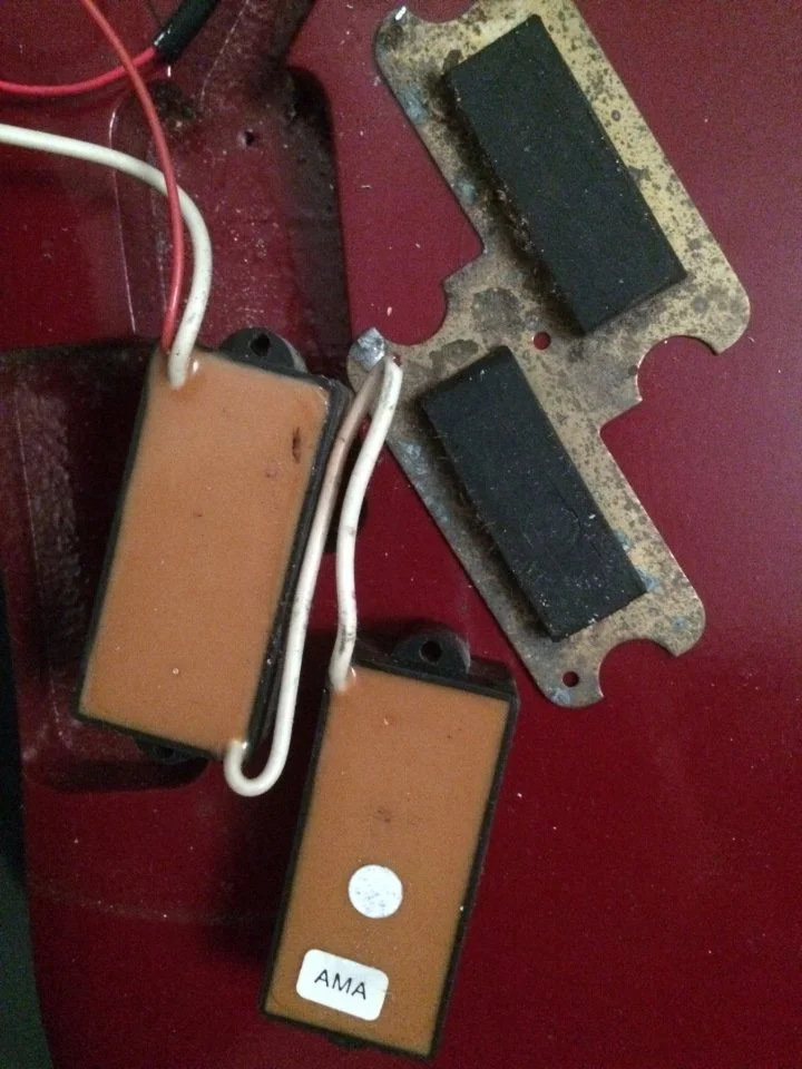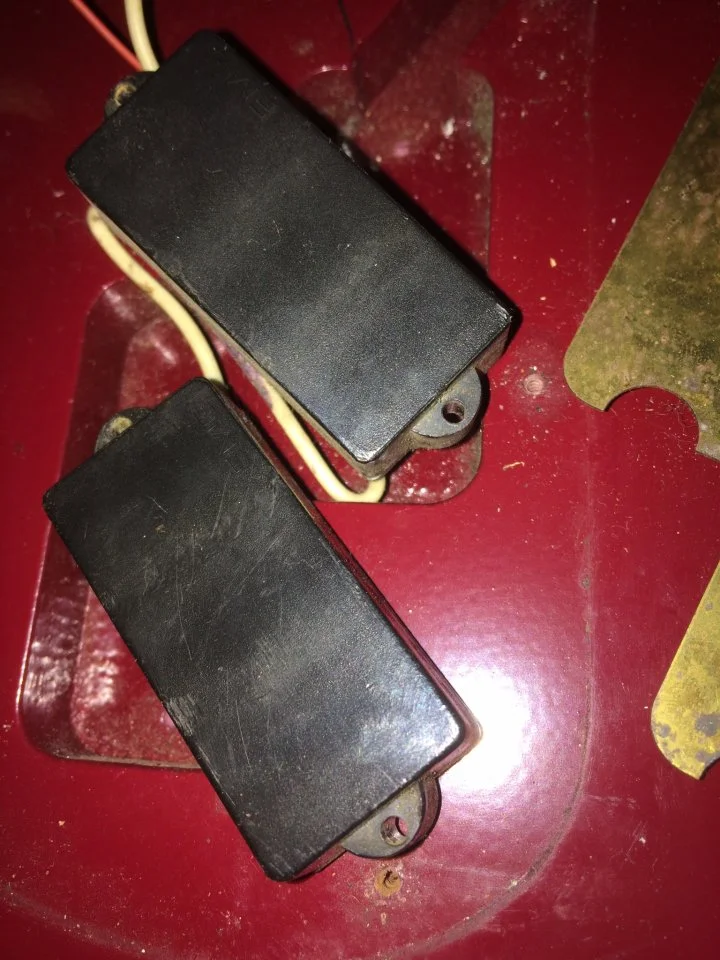... da schraub ich den verranzten P-Bass Klon vom Kumpel (auf der Kopfplatte prangt ein Rockinger Aufkleber) auf, um das knacksen der Buchse zu kurieren und dann, Überraschung! Batterie! Da sind wohl aktive Pickups drin. Das wusste keiner, er auch nicht ;-)