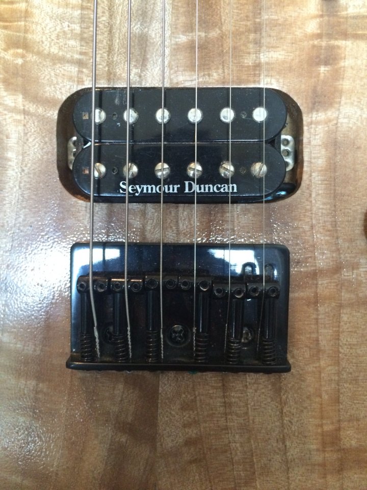 Wenn Du dann noch die Bridge austauschen willst, würde ich entweder eine klassische Fender Hardtail benutzen oder eine ABM 3256 aus gefrästem Messing, bei der die Saitenreiter nach dem Einstellen der Oktavreinheit auf der Basisplatte festgeschraubt werden, neudeutsch "gelockt". Bei beiden werden die Saiten durch den Body geführt.