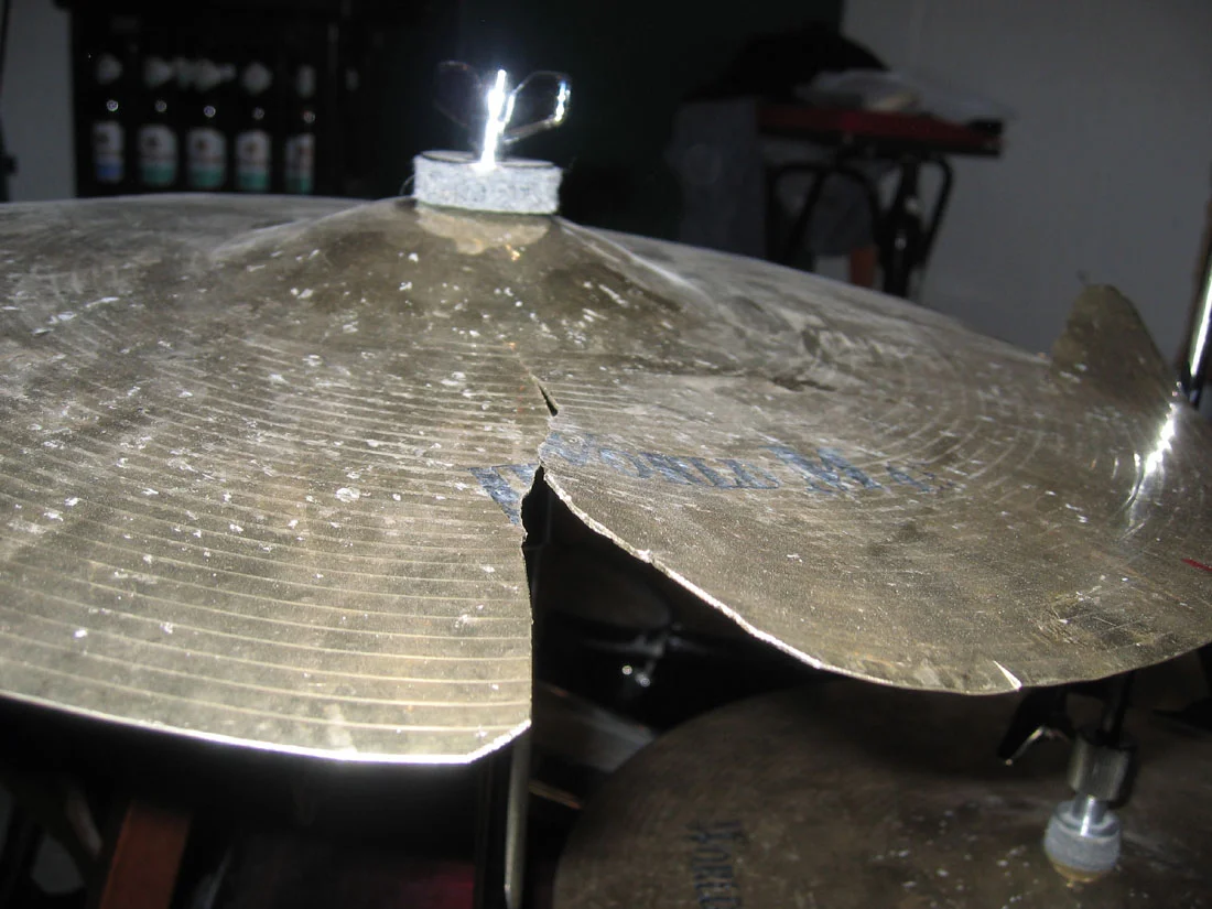 Es ist traurig, aber wahr: Mein schönes, neues Paiste 2002 Thin Crash scheint bereits den Geist aufzugeben. Zuerst war ich ĂŒberhaupt nicht ĂŒberzeugt, dass es wirklich einen Riss hat, aber mittlerweile bin ich mir fast sicher. Es hat einen kleinen, ca. 1 cm langer "Strich" am Rand der Glocke. Zuerst dachte ich natĂŒrlich an eine Stickspur von den Carbosticks. Diese Vermutung stellte sich aber leider als falsch heraus, als ich die Spur wegputzen wollte. Das ging einfach nicht. Ausserdem Klingt das Becken auch etwas ausergewöhnlich (es "Scheppert" manchmal ein bisschen).