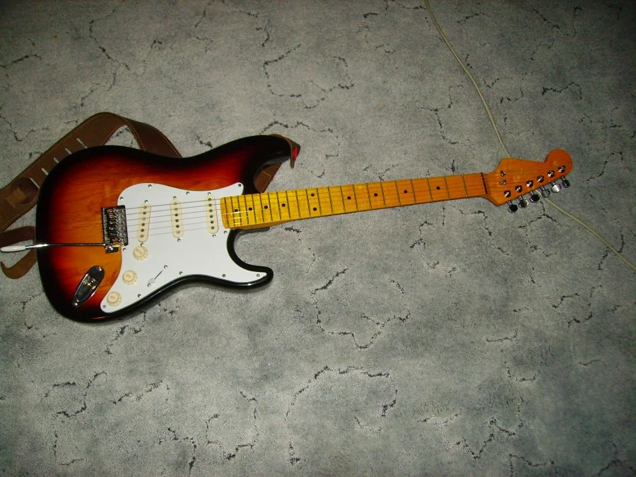 Anhängend ist ein Bild von meiner Carreer-Strat, an der ausser Vibrato, Korpus und 5-Wege-Schalter auch nicht mehr viel original ist ....