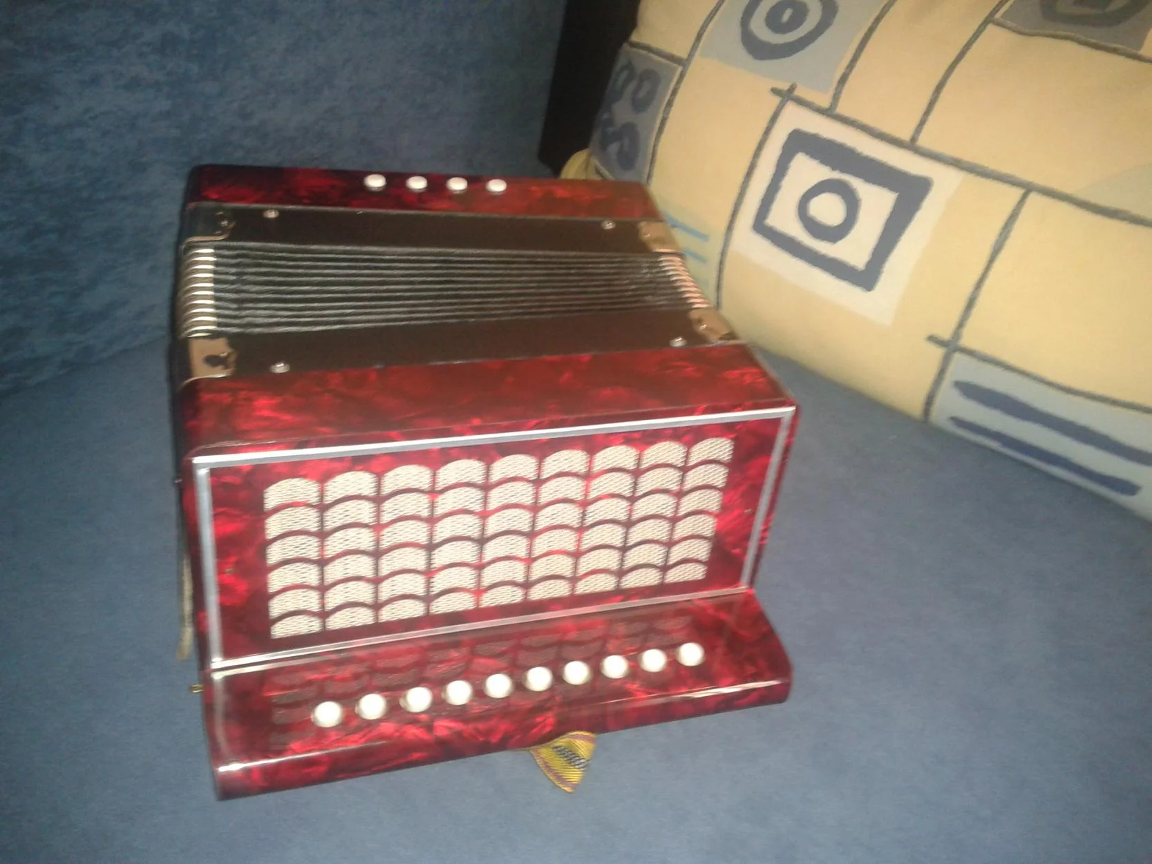 Ich bin seit gestern Nachmittag Besitzerin eines Wiener Einreihers, laut Plakette Made in German Democratic Republic und in C-Stimmung. Der mehr als verblichene Aufkleber auf dem Karton offenbart lediglich, dass die Farbe rubin ist. 🙄 Zur Herkunft weiß ich nur: hat 50 Mark gekostet.