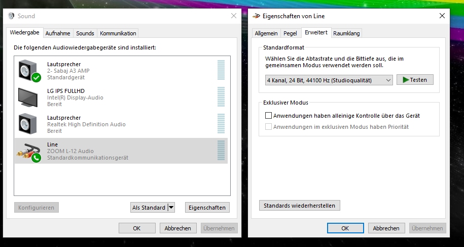 Ich hab mir kürzlich einen Tower PC für mein Studio gebaut auf dem Windows 10 läuft. Hab ihn gestern in mein Studio gestellt und mein USB Interface (Presonus Studio Live SC) angeschlossen. In Ableton habe ich in den Einstellungen ASIO als Treiber gewählt und da tauchte mein Studio Live als Gerät auf. Ableton und das Interface standen auf 48Khz und hatten die gleiche buffer size. Wenn ich dann Audio von Ableton abgespielt habe kam es zu immensen glitches und verzerrungen. Auch der System Sound von Ableton (Stand auf Studio Live WDM 1/2) hat genau so gezickt. Wenn auf 44.1 gegangen bin, waren die Glitches fast weg. Auch hier kam es zu kurzen Klicks und Aussetzern beim Abspielen.
