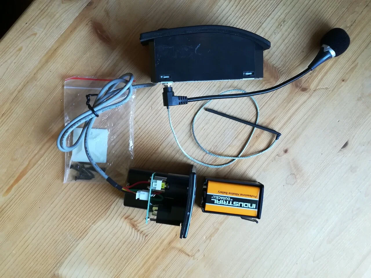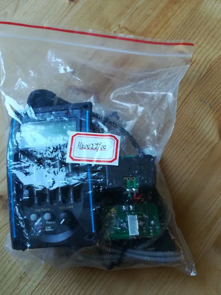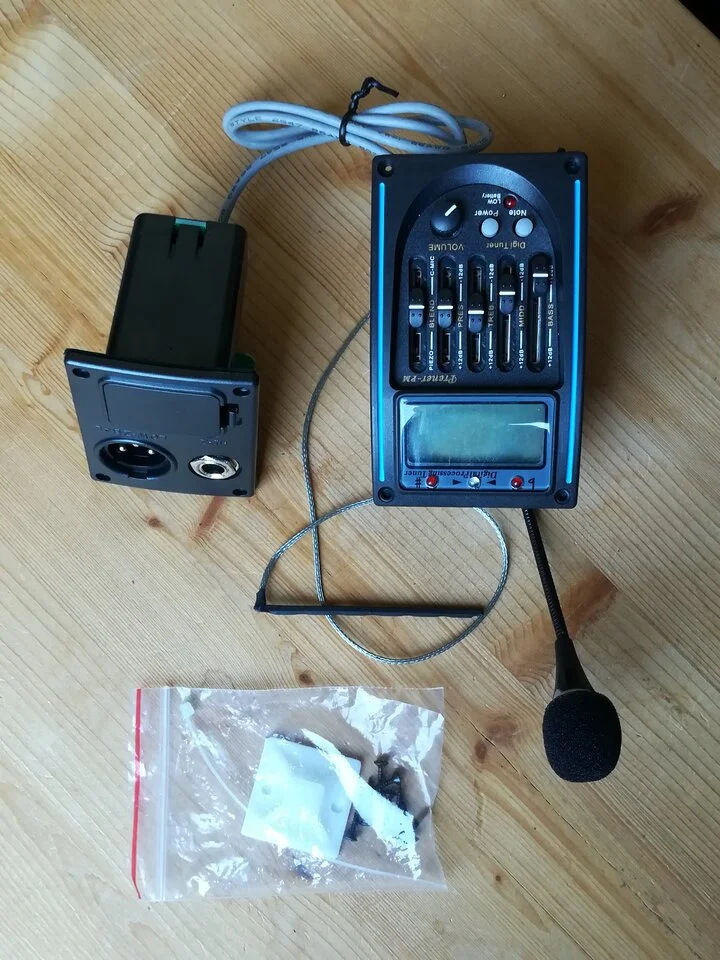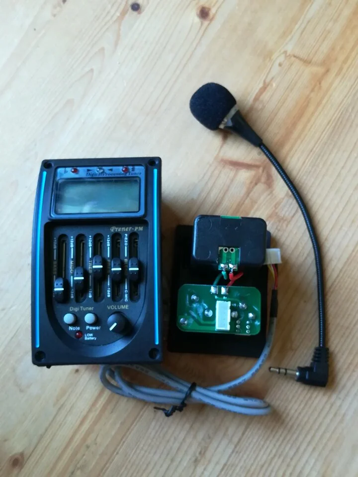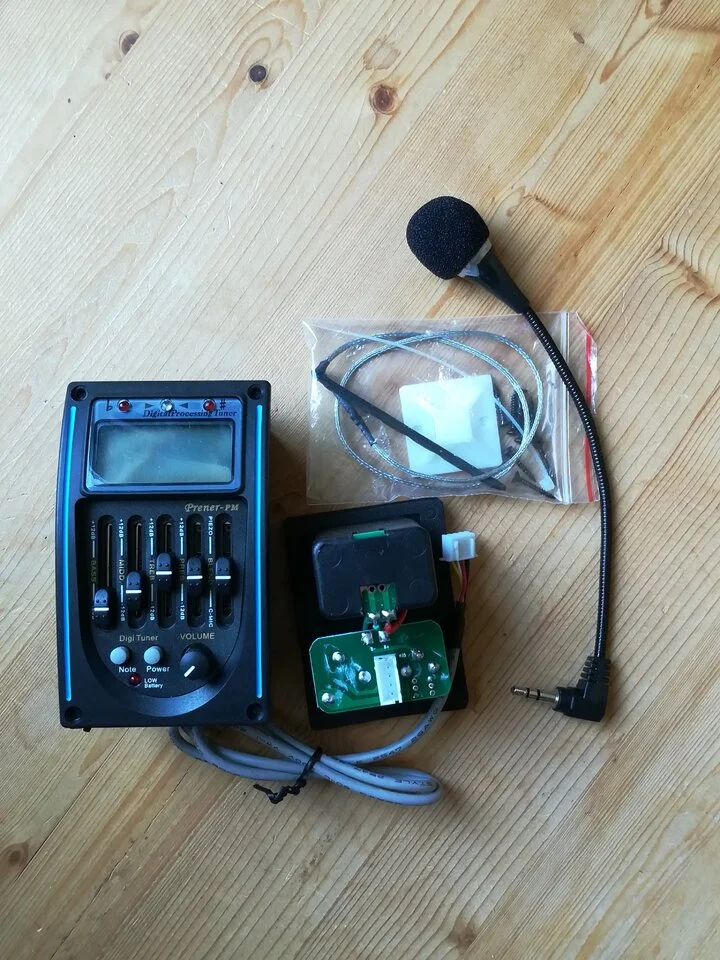 Also bestellte er in China das komplette Set mit Zargenradio, Untersteg-Piezo, Mikrofon und Batteriefach/Ausgangseinheit für etwa 40€.
